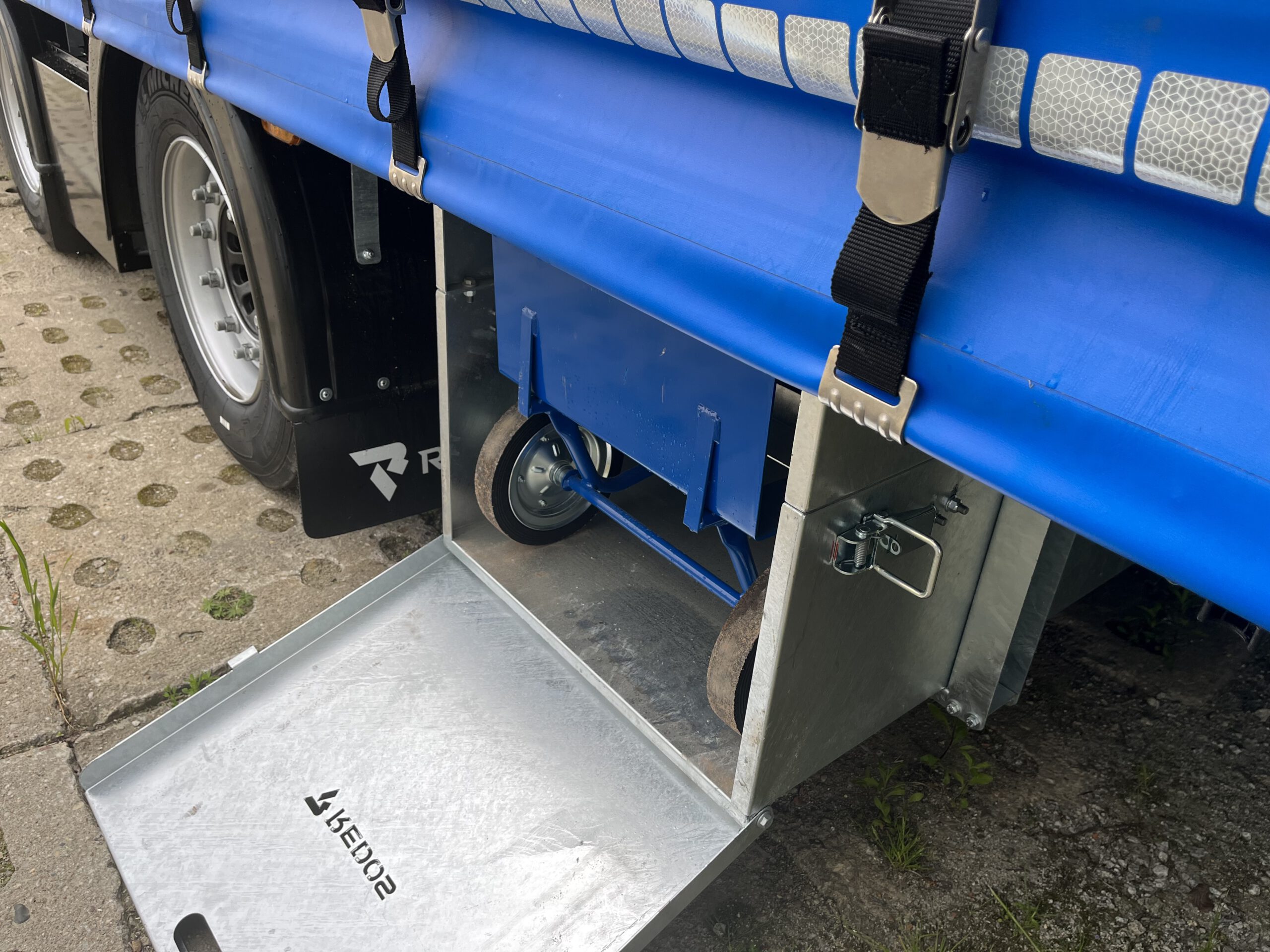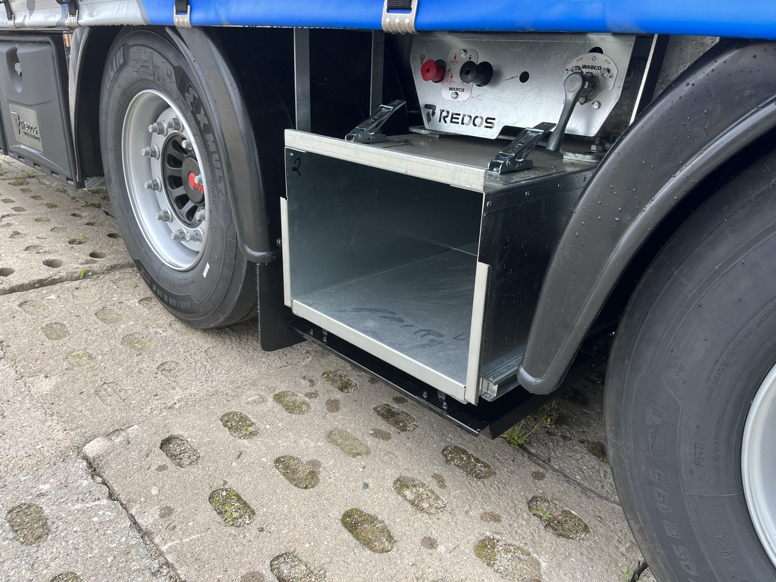 Zabudowa nadwozia została wykonana przez renomowanego producenta Redos Trailers, w typie CURT-trail PREMIUM. Boki nadwozia wykonane są w formie kurtyny, a istotną zaletą jest konsola obniżająca ze sprzęgiem, co umożliwia stabilne połączenie pojazdu z przyczepą. Podłużnice nadwozia wykonane są z wytrzymałej stali ocynkowanej ogniowo, zapewniając nie tylko wytrzymałość, ale także ochronę przed korozją.