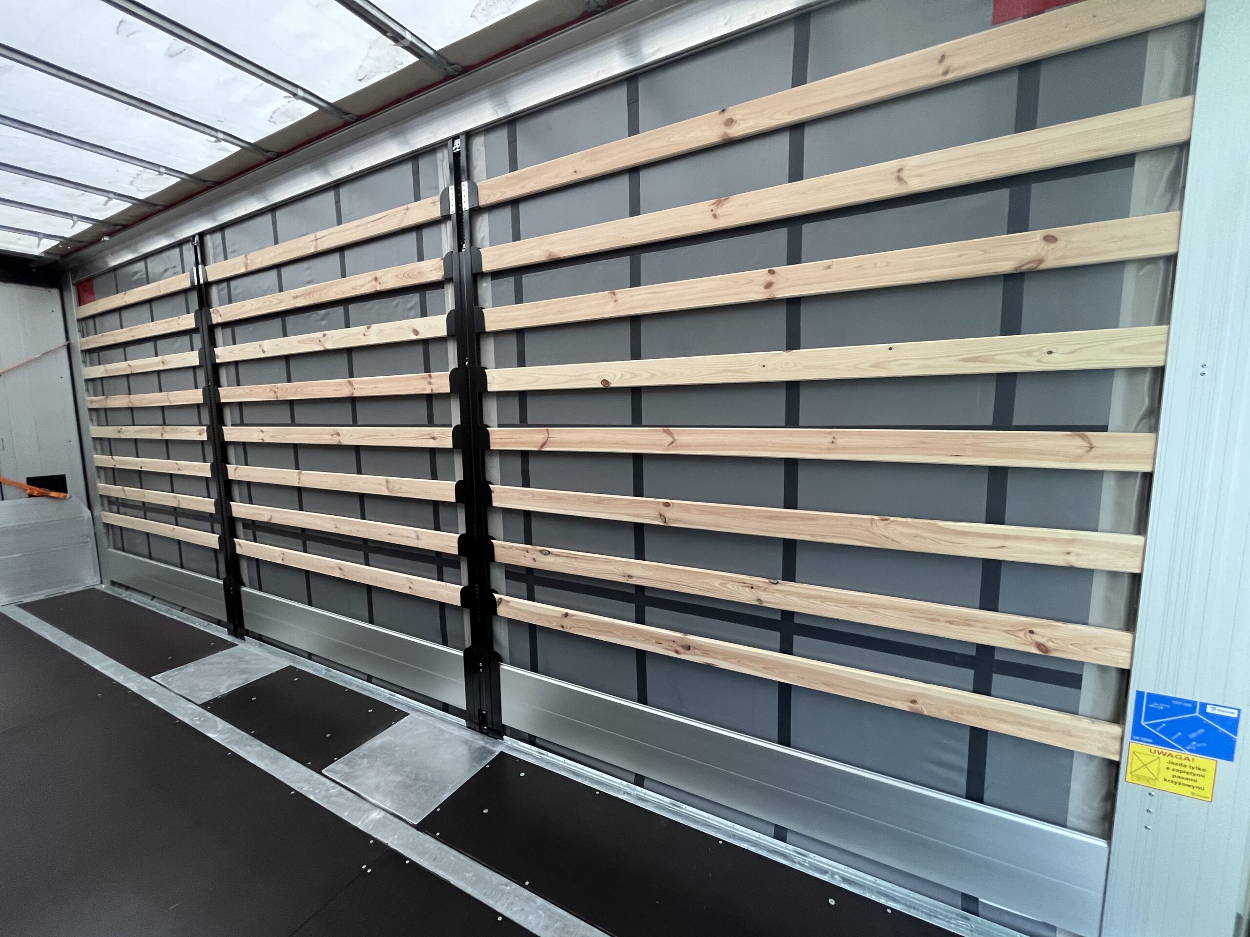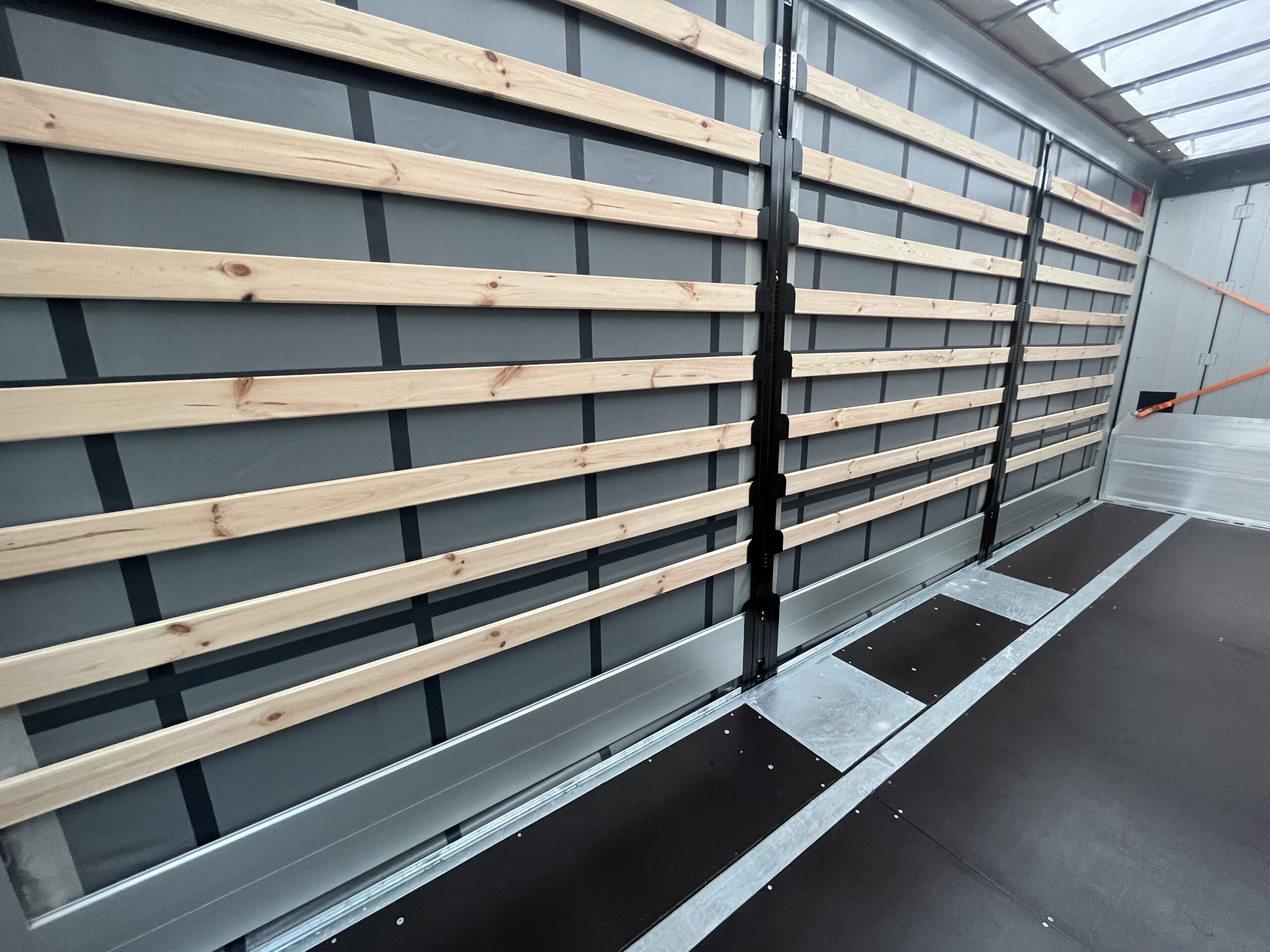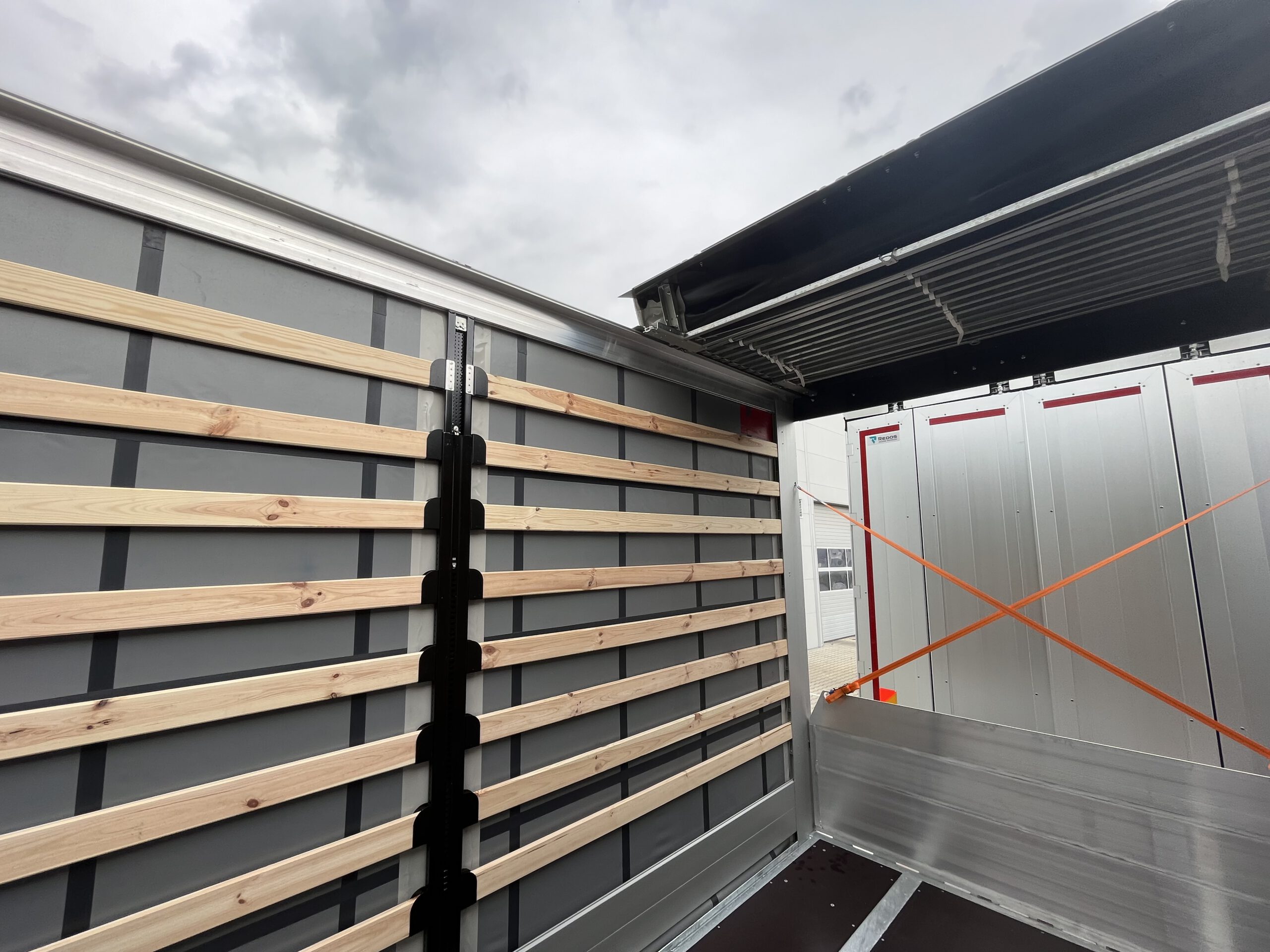 Ściany boczne przyczepy wyposażone są w suwane kłonice HESTAL na wózkach ze zintegrowanymi kieszeniami na listwy, co umożliwia dodatkowe mocowanie ładunku. Listwy boczne wykonane z aluminium i drewna zapewniają odpowiednie zabezpieczenie ładunków podczas transportu.