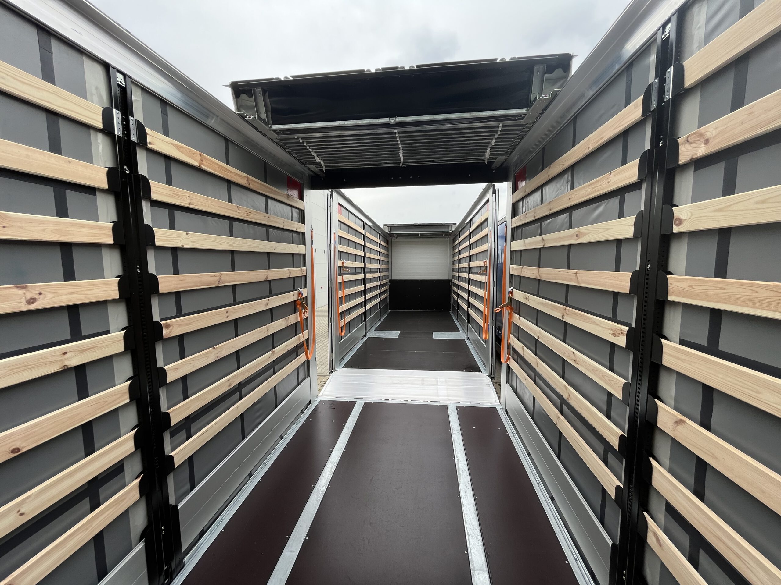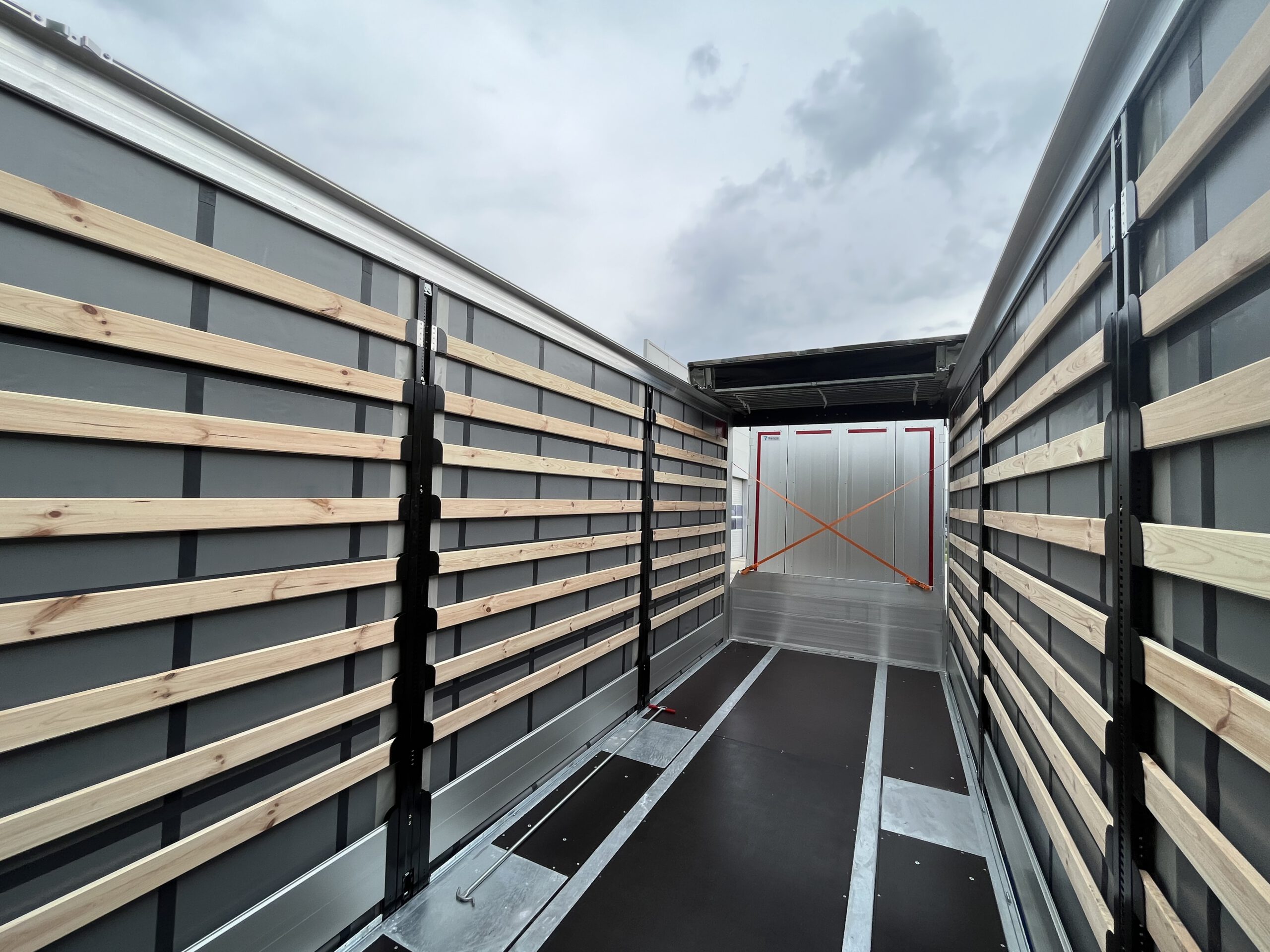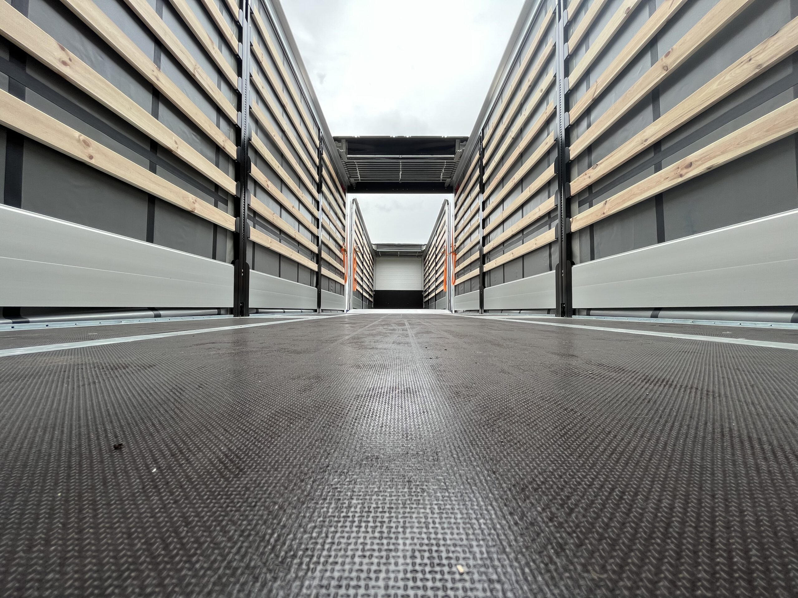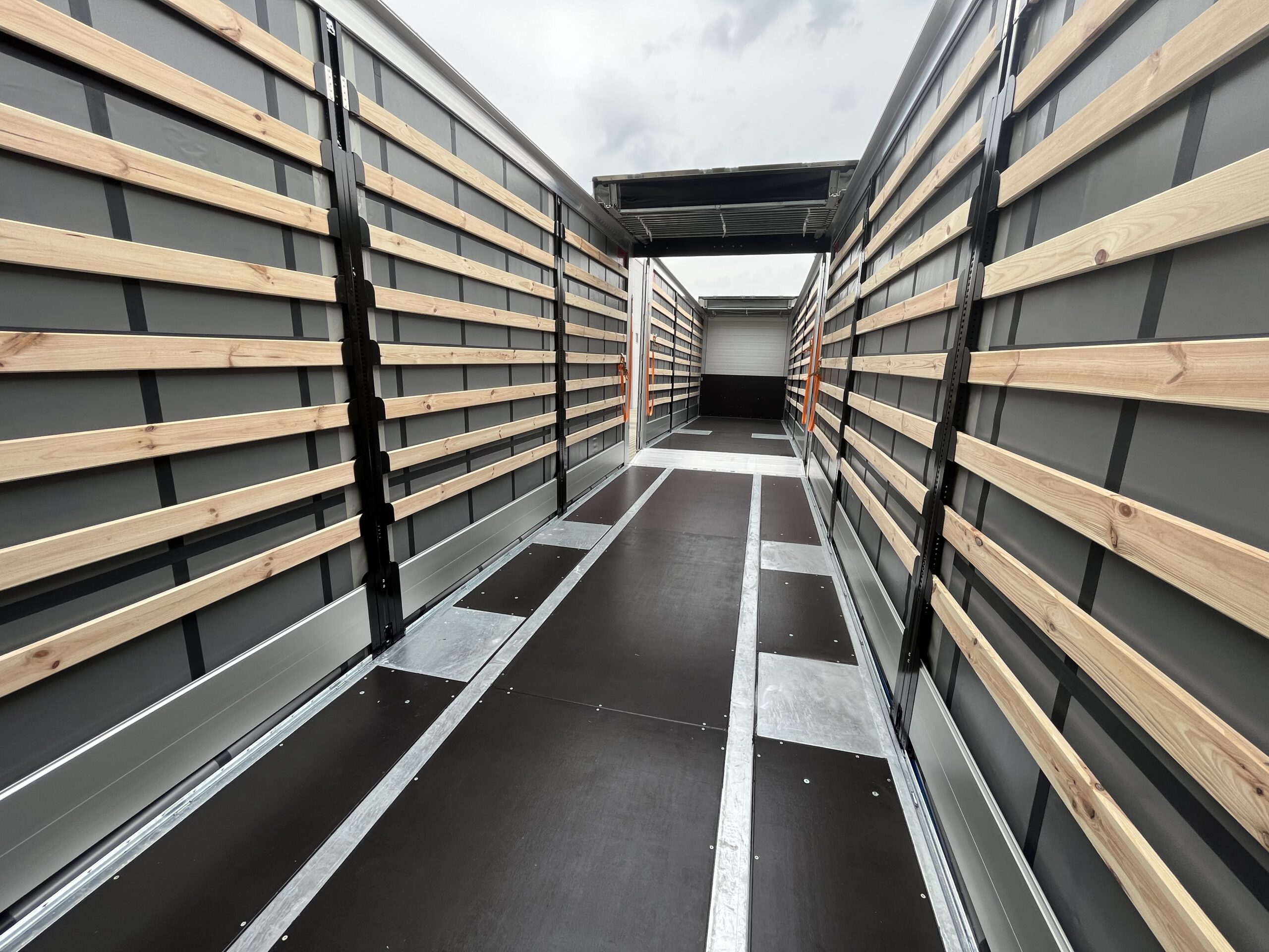 Ściany boczne przyczepy wyposażone są w suwane kłonice HESTAL na wózkach ze zintegrowanymi kieszeniami na listwy, co umożliwia dodatkowe mocowanie ładunku. Listwy boczne wykonane z aluminium i drewna zapewniają odpowiednie zabezpieczenie ładunków podczas transportu.