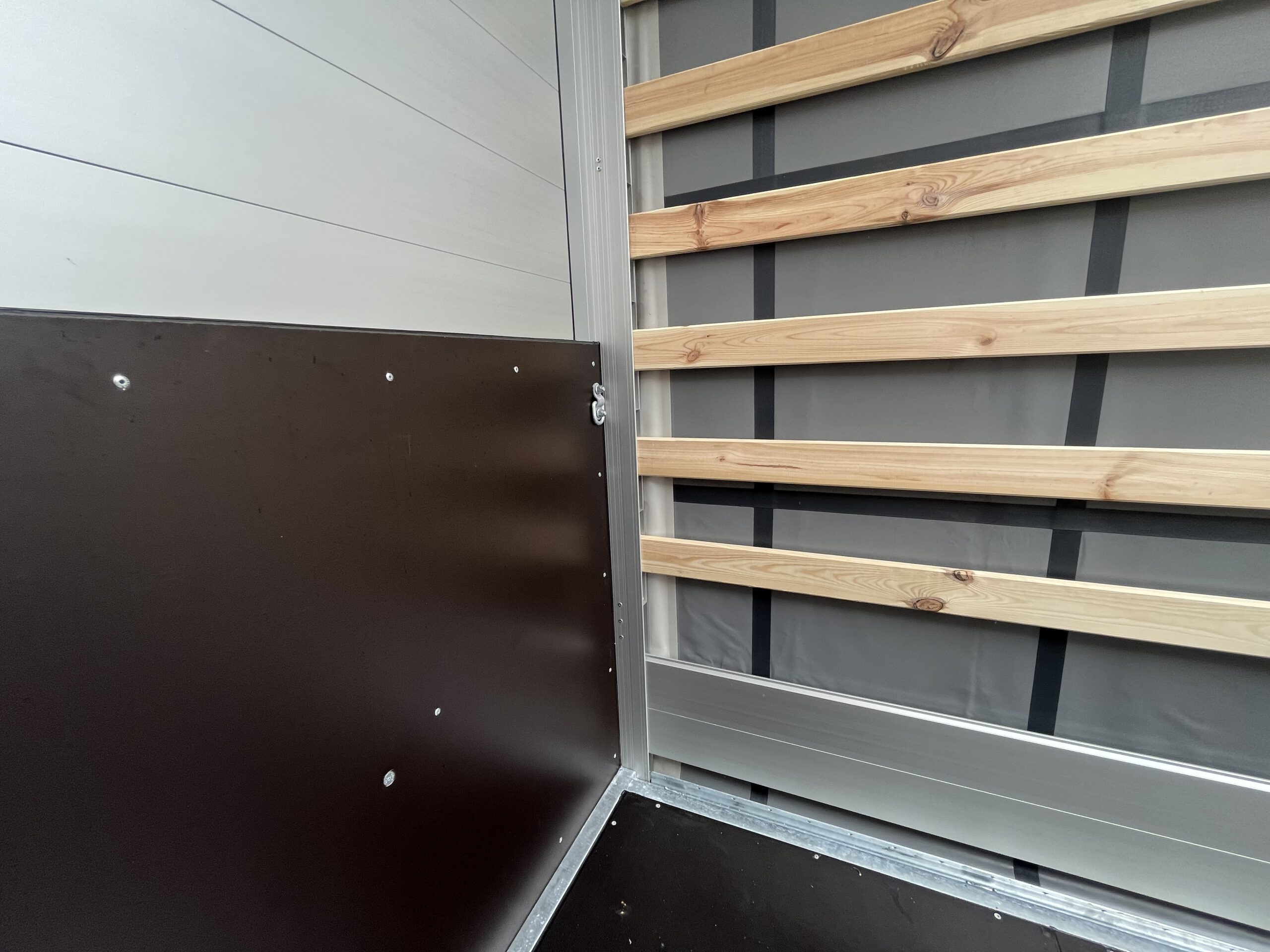 Ściana przednia pojazdu składa się w całości z paneli aluminiowych anodowanych, co zapewnia wytrzymałość i odporność na warunki atmosferyczne. Dodatkową ochronę zapewnia sklejka ochronna do wysokości 1 250 mm. Słupy narożnikowe wykonane są z aluminium anodowanego, a ich konstrukcja zawiera kieszenie na listwy boczne, co ułatwia i zabezpiecza transportowane meble.